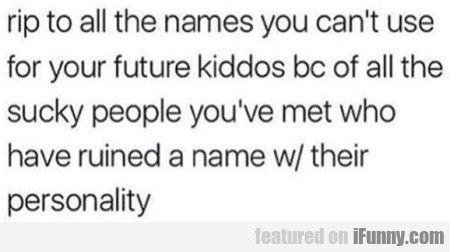 Rip To All The Names You Can’t Use For Your.. Ralph Uncategorized ShareTweet Read more: http://www.ifunny.com//pictures/rip-all-names-you-cant-use-your/ ShareTweet Comments Off on Rip To All The Names You Can’t Use For Your..Related Posts A Simple Way to Develop Personal Power | Sadhguru #shorts Anxiety Disorders Video Wave and Todd Gross Bonuses Don’t Become Old When You Are Young